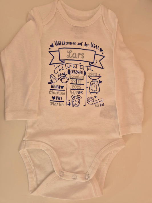 Personalisierter Babybody mit Namen und Geburtsdaten