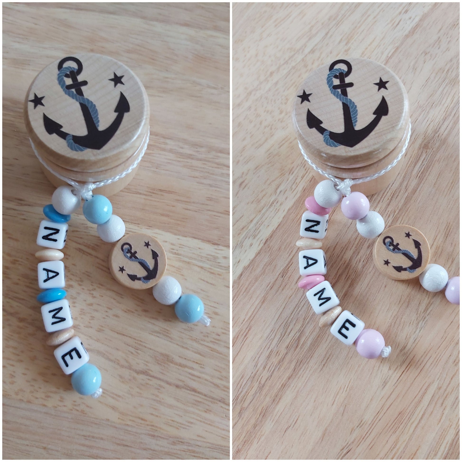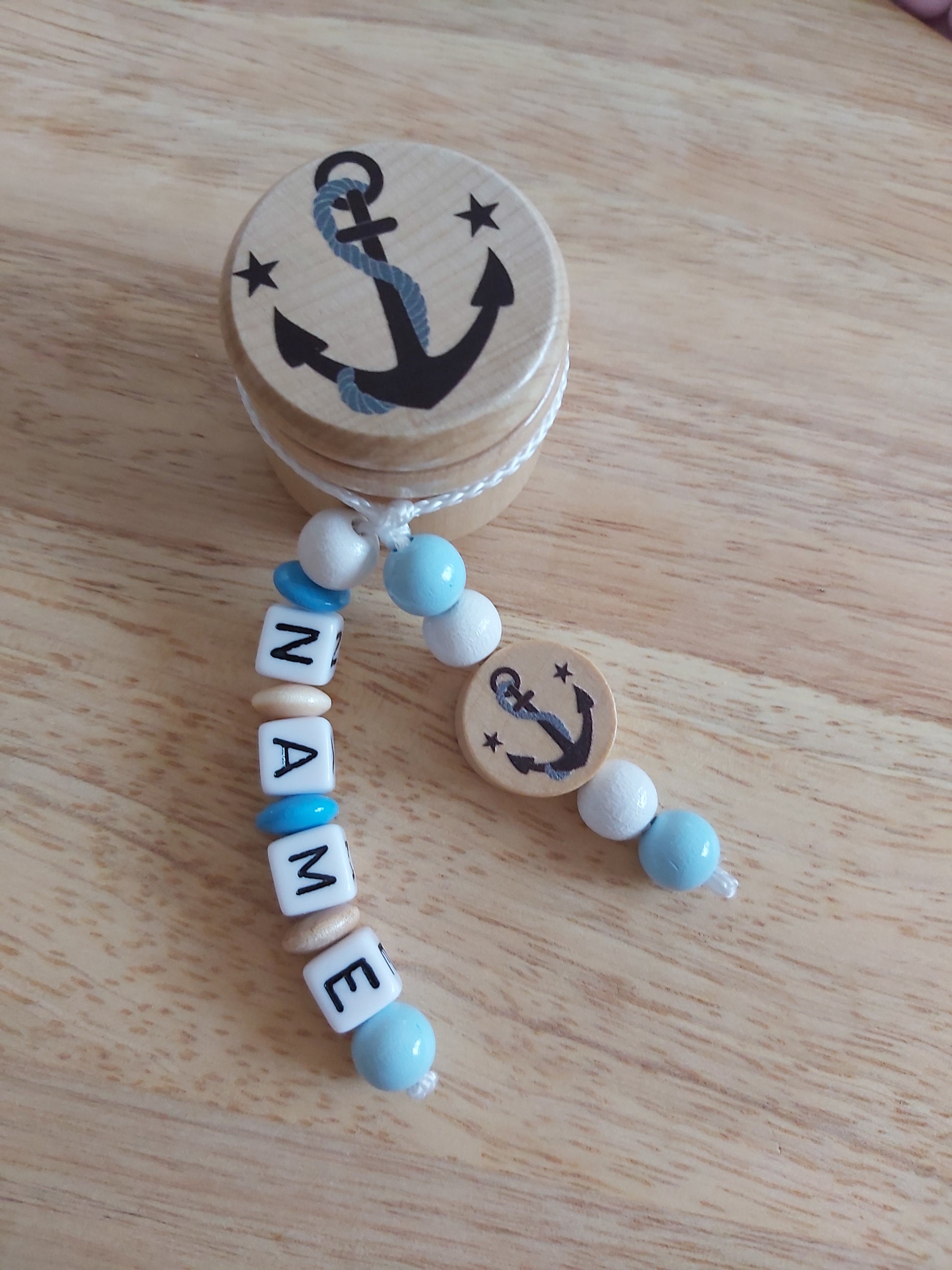 Diese wunderschöne Milchzahndose mit Anker-Motiv wird mit Ihrem Wunschnamen verziert. Sie dient dazu, die Milchzähne aufzubewahren, und ist ein äußerst schönes Geschenk zum Kindergeburtstag oder zu anderen Anlässen.